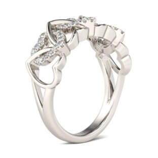 Treat the one you adore to this anniversary band. Created in sterling silver, this ring features a series of alternating right side-up and right side down heart-shaped frames. Shimmering round stones are set on the hearts to add extra sparkle to the band. A meaningful look, this band makes an adorable gift for her or…