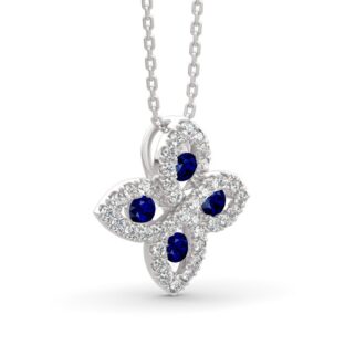 Sparkling and stunning, this necklace will capture your heart at first sight. Crafted in sterling silver, the pendant features four little round cut stones wrapped in a flower-look frame of shimmering smaller round stones, which shows a really exquisite look. With a glistening flower to perfect the design and add extra sparkle,this necklace will show…