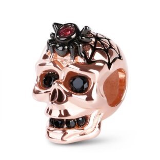 This eye-catching 18k rose gold charm features a silver skull encrusted with Garnet and Black CZ with a spider on it. Beautifully handcrafted in 925 sterling silver which offers an elegant and flawless look. A great addition to your bracelet. Enhanced with crystals and the spider wed, this uniquely designed Skull Charm will bring striking…