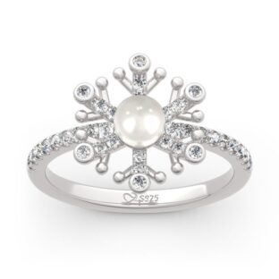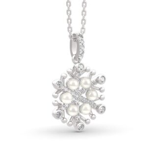 Wear this darling design while snuggling up by the fireplace with hot cocoa, for that special winter occasion, or simply to feel cooler on a hot summer day.Crafted in sterling silver, this one-of-a-kind snowflake design is decorated with six cultured pearl and scattered with shimmering stones, creating a fresh and elegant look. Enjoy the beauty…