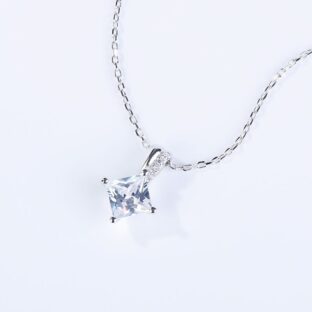 Simple, yet captivating, princess cut stone has long-been desired for their sheer brilliance and elegance. Magnificent enough to stand alone, the beauty of a princess cut solitaire needs no accompaniment. A shimmering token of your affection, this necklace is certain to be appreciated. Setting Information Metal : 925 Silver Width : 7 mm Height :…