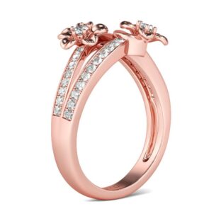 Lively and exquisite,this ring will be an eye-catcher everywhere. Crafted in beautiful rose gold tone silver,set with brilliant round stones,with the two delicate flowers on the swirl-shape shank,the ring will show an elegant and unique look on your left hand. Never miss it. Side Stone Number of Stones : 34 Carat Weight : 0.57 ct…