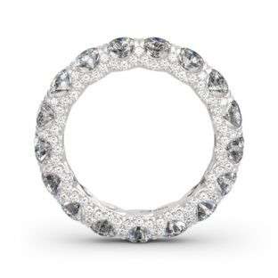 Celebrate your everlasting love story with this eternity band. Stunning as a wedding or anniversary band, this band shimmers with prong-set round stones that completely surround the band. On trend and shimmering, this beautiful band adds out-of-this-world sparkle to your style. Side Stone Number of Stones : 54 Carat Weight : 5.31 ct Stone Shape…